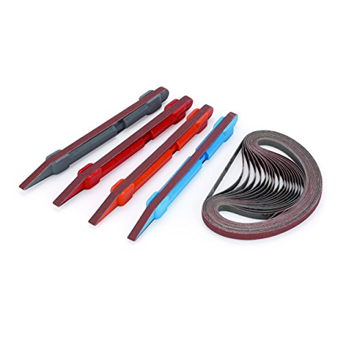 - 24 Piece Standard Kit includes 4 color coded sticks and 5 belts each in 80, 120, 180, and 240 grits