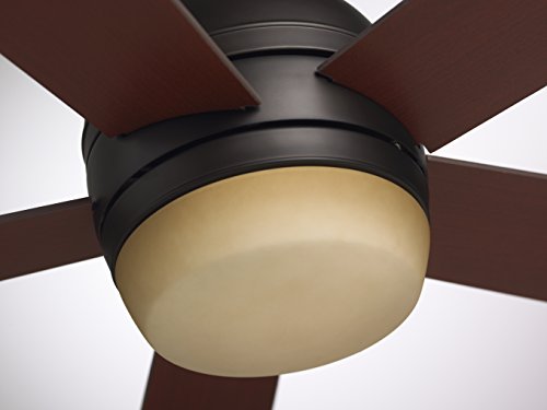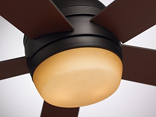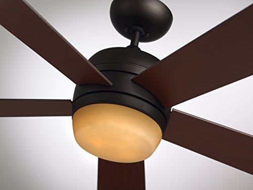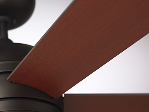 This 52-inch Atomical Emerson ceiling fan with Oil Rubbed Bronze housing and Dark Cherry finish blades brings a contemporary vibe to any home décor. Features include a 4-1/2-inch downrod, 5 custom Dark Cherry blades and the SR400 remote control and receiver so you can create custom speed and light settings. With a Damp Location rating, the Atomical is the perfect Emerson ceiling fan for your covered outdoor areas. The integrated light fixtures includes 2, 60-watt candelabra bulbs for a warm, ample glow. Buy with confidence knowing your purchase is backed by Emerson's Limited Lifetime Motor Warranty.Feature