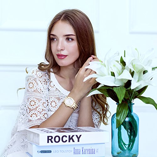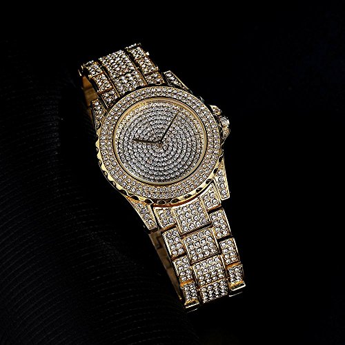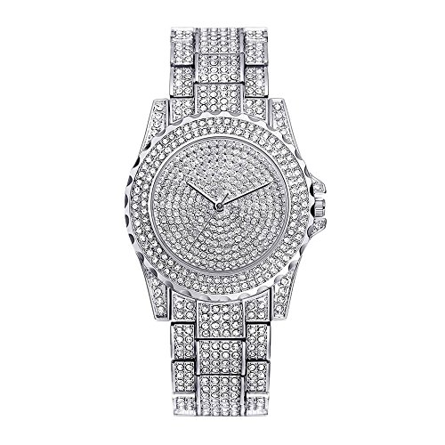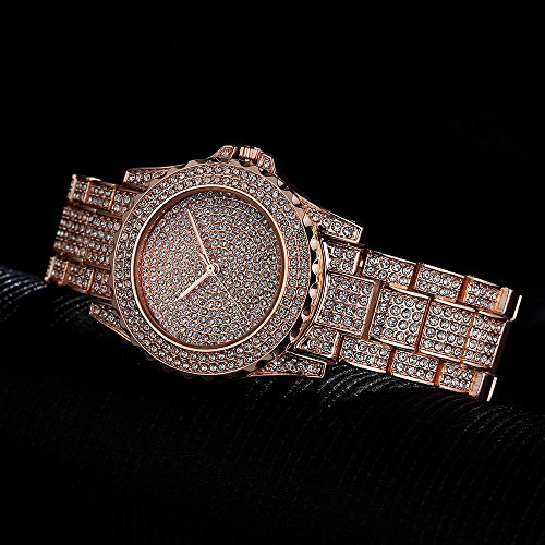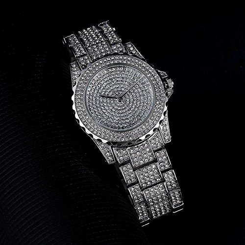 -. Feature : Diameter 37 mm big round watch face with diamonds decoration / 0.79 inch wide, 8.66 inch long heavy metal watch band with jewelry clasp / Quartz movement for time-keeping, without the matter of everyday's check / Best gifts for women at Christmas, birthday, Valentine's Day, wedding etc. / 30m water resistant, withstands for hand and face washing, not suitable for diving, bathing, swimming
