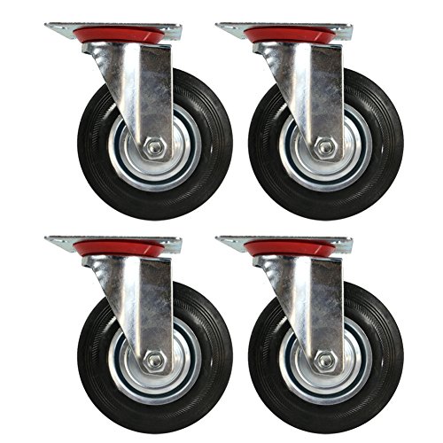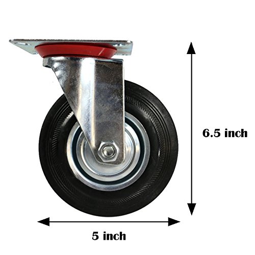 The Elixir Industrial 5" Heavy Duty Swivel Caster Wheels Rubber Base with Top Plate & Bearing, Set of 4