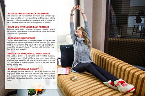 While sitting, your backside gets uncomfortable. Driving is more pain than enjoyment. You've suffered from discomfort for so long...Want to get rid of the numbness? Few give the spine the care it needs until problems begin appearing. We've been there which is why we began to help people prevent instead of treating and to provide relief for back issues. The Verggo Posture Protector is perfect if you: ?? Want to prevent lumbago while keeping a healthy back ?? Suffer from back problems and want to alleviate or ease them ?? Want the best quality products for your health ?? Spend a lot of time working in front of your laptop or have occupational lumbar issues, feel that you need extra rest for your tired back ?? Drive long road trips and need increased breaks; whether by auto or by airplanes, it is one of the accessories to have included in your travel kit ?? Want a versatile indoor and outdoor posture corrector while you sit. ?? Have kids who enjoy gaming and protecting them is important for you Features ? Strong elastic strap extends from 16.9' to 42.9' ? Soft cover provides great comfort ? Heath practitioners recommend backrests to protect the spine's curvature. ? Great gift for family, friends or those who would enjoy more comfort while they sit! ? Size: 17.71 x 16.14 x 4.72 in ? Weight: 1.6 lb Guarantee The manufacturer guarantee ensures if you are not satisfied you can return it in 30 days for a No-Question, Hassle-Free Full Refund and 1 Year Free Replacement Warranty (conditions apply). Click "Add to Cart" now to enjoy the most comfortable sitting experience! 0 |
