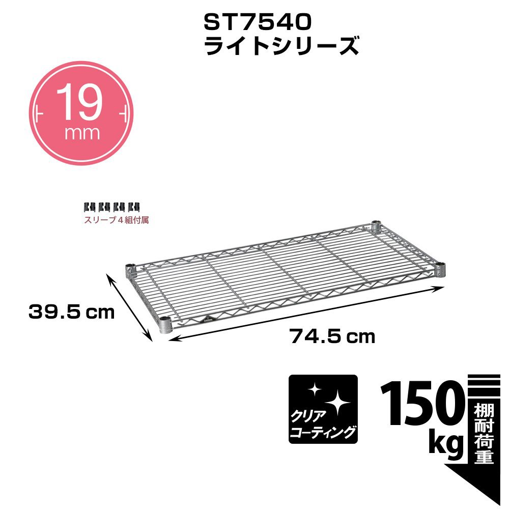 Luminous pole diameter 19mm parts for shelf plate steel shelf (load capacity 150kg) 1 sheet wire width direction (with sleeve) width 74.5 × depth 39.5cm ST7540