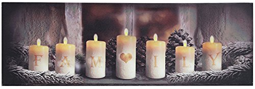 Oak Street 12" x 5" Light Up Holiday Flicker "Family" Candles Tabletop Canvas Art