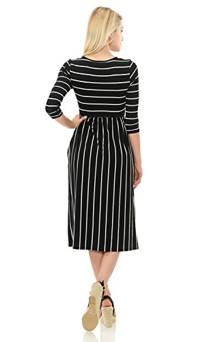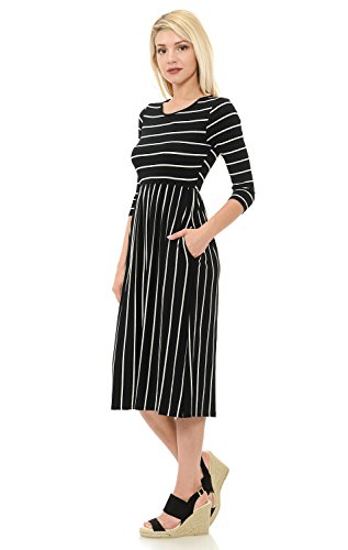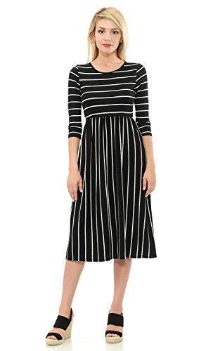 This cute dress features three quarter sleeves, rounded neckline, midi length, concealed side pockets and flared skirt. It is made with soft jersey knit that has great stretch.