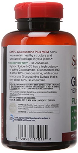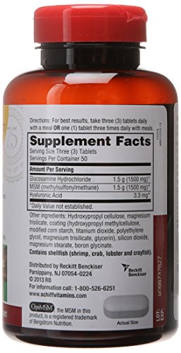 -. Title : Schiff Glucosamine 1500 mg Plus MSM 1500 mg and Hyaluronic Acid Joint Supplement, 150 Count Coated Tablets