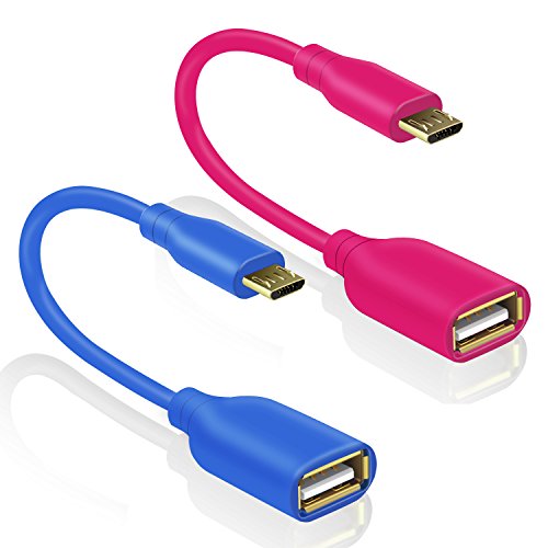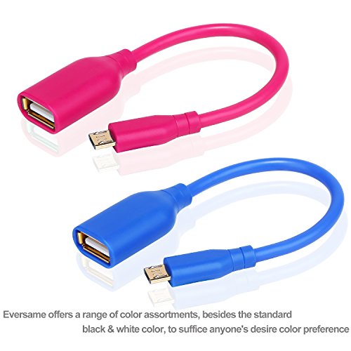 Eversame OTG Cable Adapter, [2-Pack] 6 Inch USB 2.0 A Female to Micro B Male Converter On The Go Charger Cable For Samsung Galaxy S6 Edge/Tab A, HTC, LG, Nexus 4 and More(Blue Hot Pink)