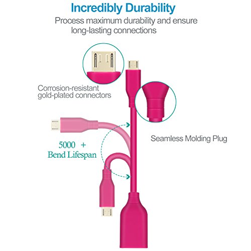 PREMIUM OTG CABLES: Engineered with seamless molding plug and gold-plated connectors ensure long-lasting connections, plus tough PVC fiber jacket processes maximum durability