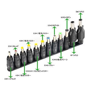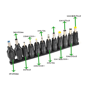 これらのDCジャックあって、ほとんどのノートパソコンに対応できます。※以前は34種で、現在HP/DELL用を4種を増加した。