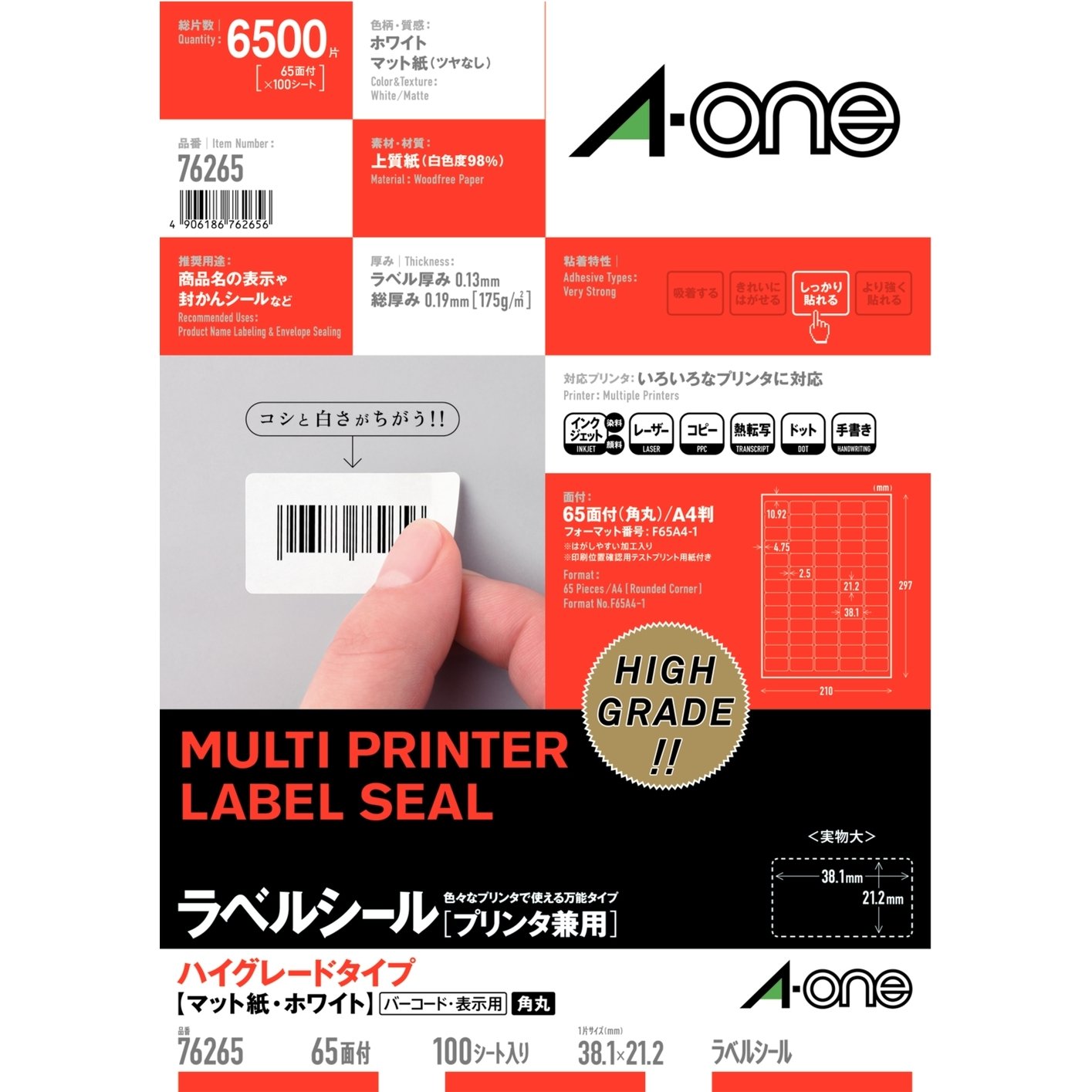 A-One label seal printer shared high-grade type 65 face 100 sheets 76 265