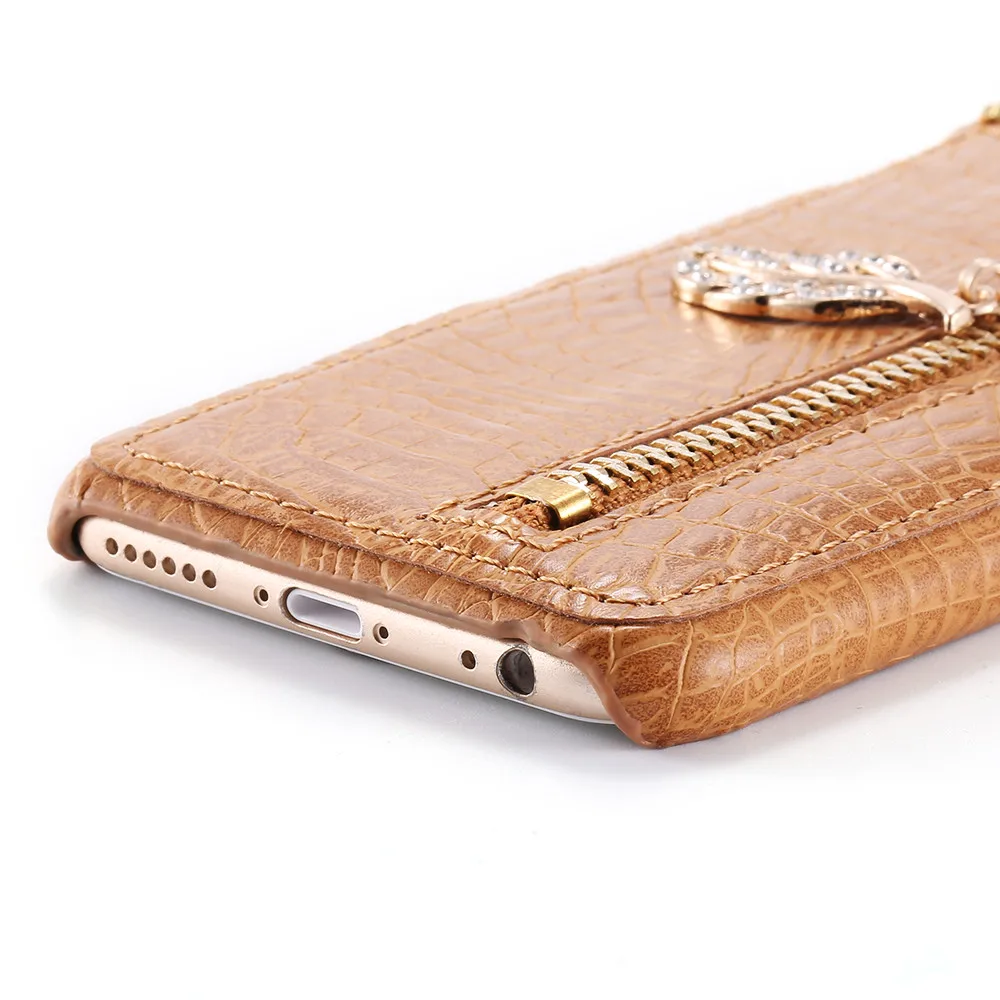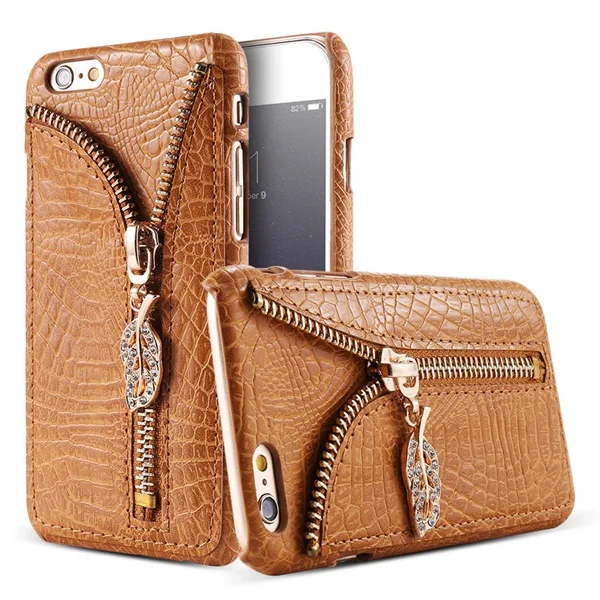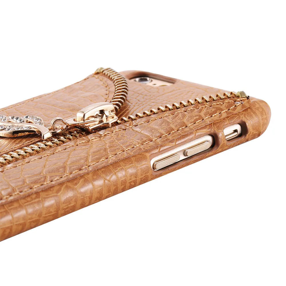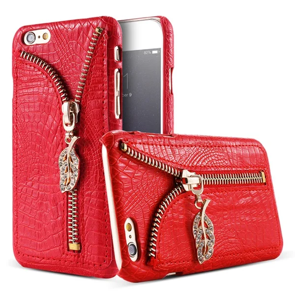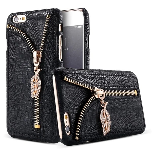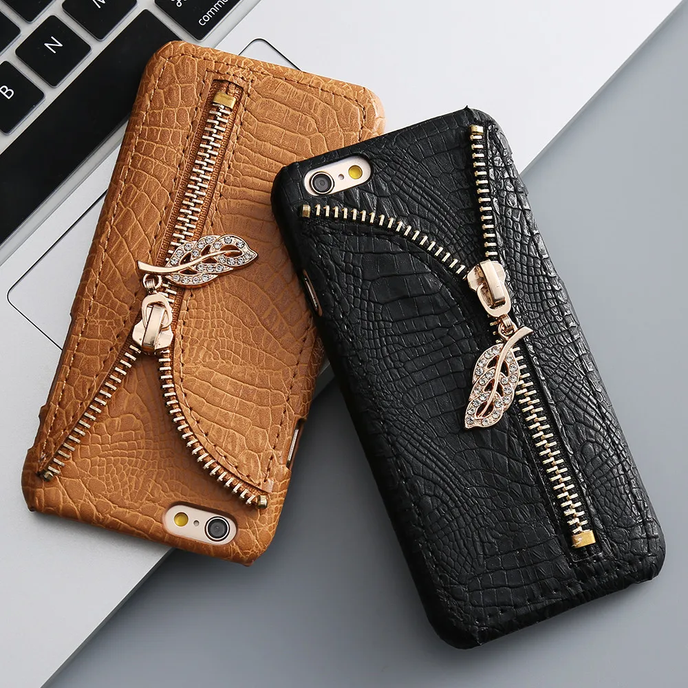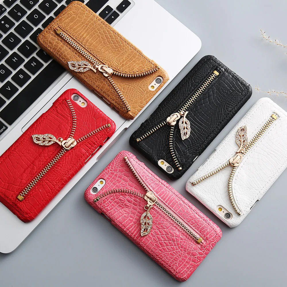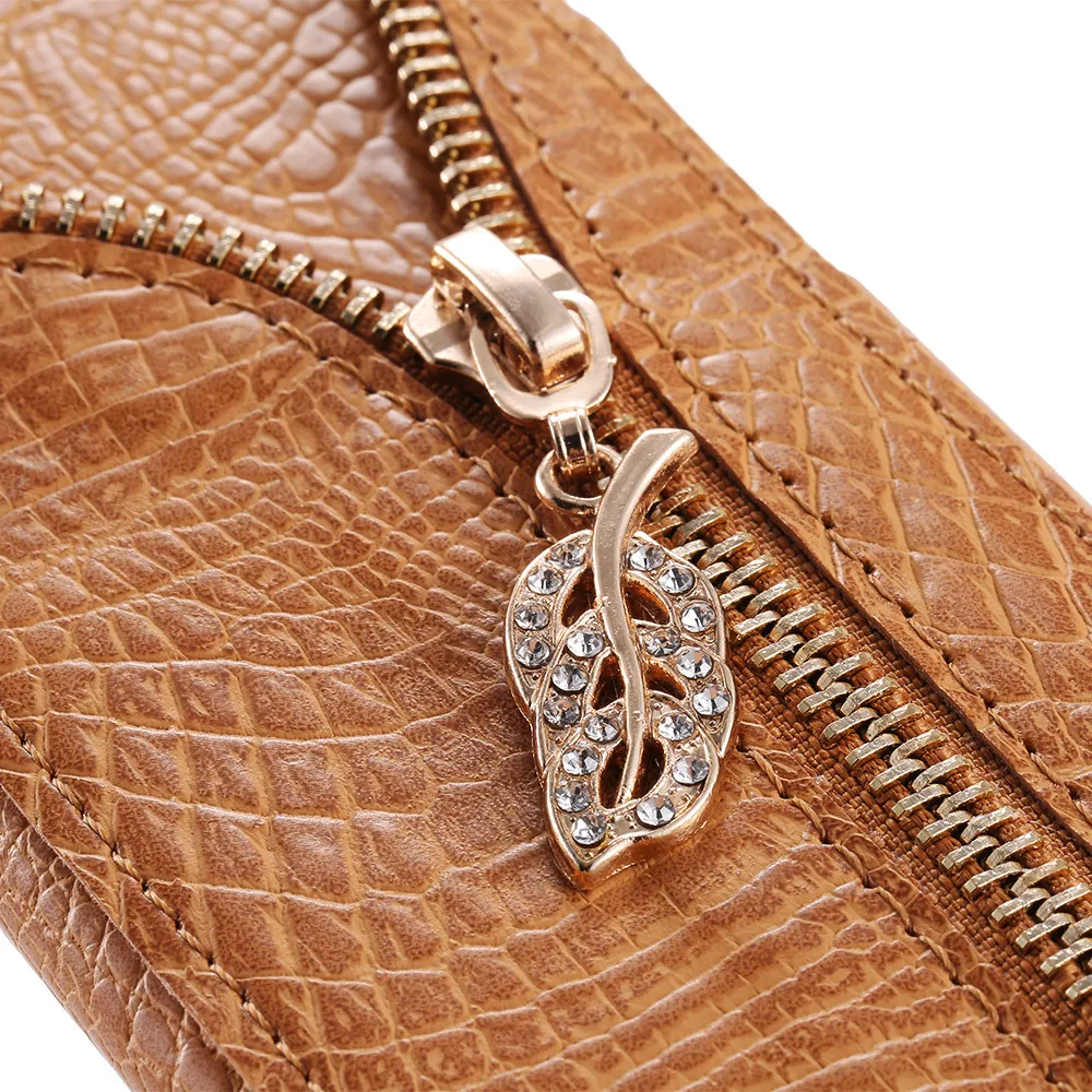 Feature :Zipper Leaves with Diamond+Elegent Style+Crocodile Pattern +Card Slot