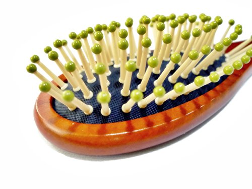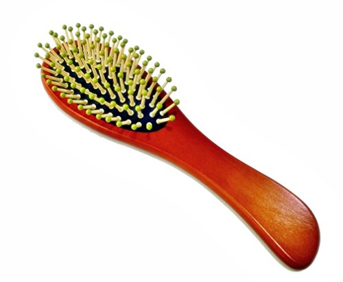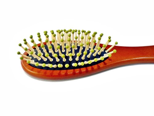 Natural Wooden Hair Brush Paddle with Plastic Buttons Cushion Scalp Massage Hairbrush Anti-static for Healthy Hair Comb (new) (Large Brownish)