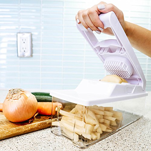 CLEANING IS SIMPLE – Effortlessly dislodge any food pieces from the pushing portion of the lid, disassemble the components, and place the entire Vidalia onion chopper multiuse device on the top shelf of the dishwasher.