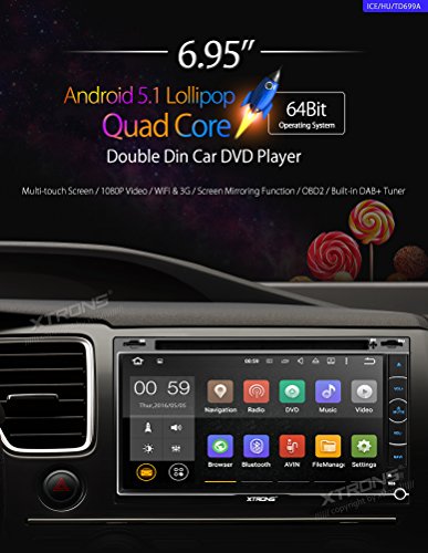 -. Title : XTRONS Double 2 Din 6.95 inch Android 5.1 Lollipop Quad Core Capacitive Touch Screen Car Stereo Radio In Dash DVD Player GPS Screen Mirroring OBD2 Built-in DAB+ Tuner