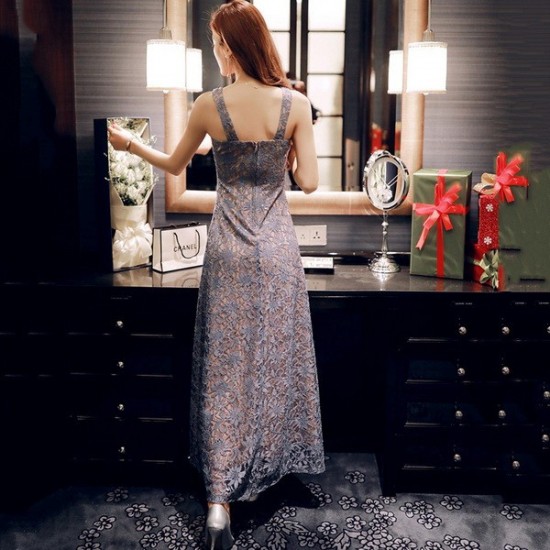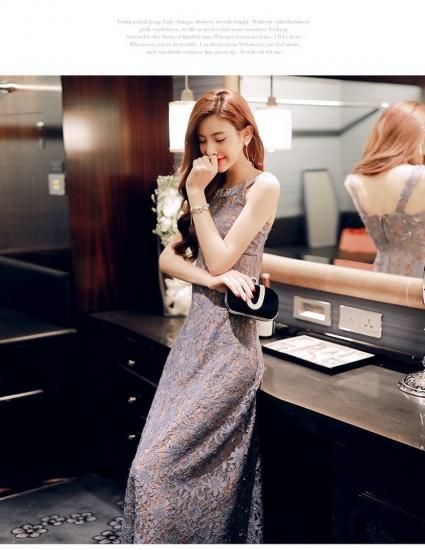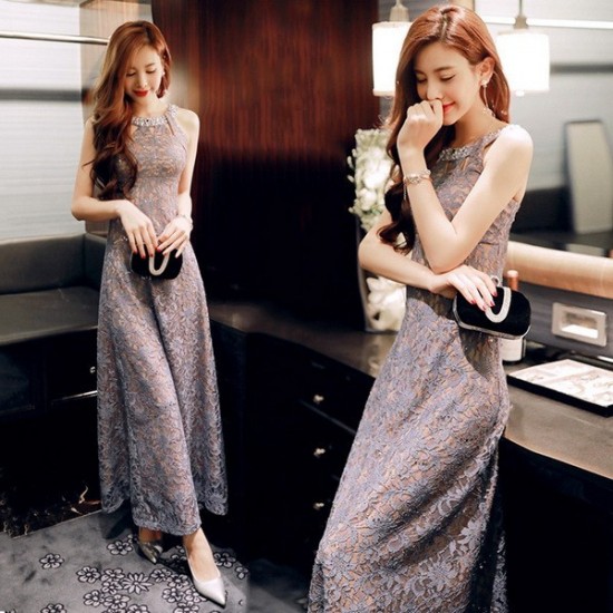 パーティードレス ロング丈 ワンピース Aライン セミフレア フラワーレース ビジュー スパンコール 華やか エレガント 大人 上品 お呼ばれ drgz2273