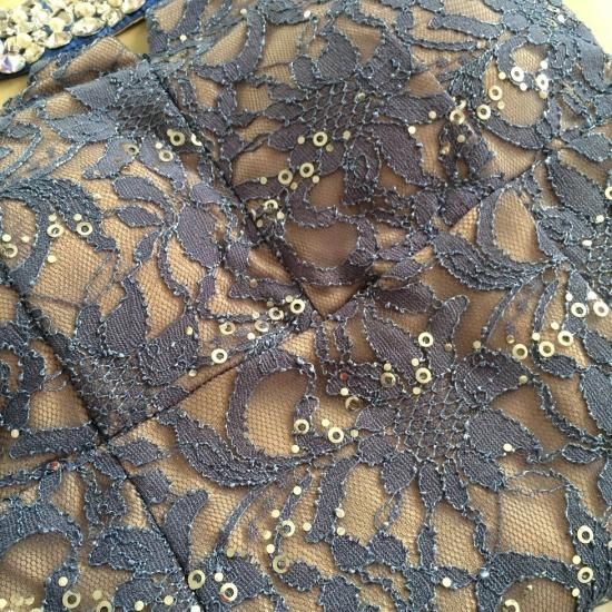 デコルテ部分にあしらわれたビジューやスパンコールが、華やかさをアップします。