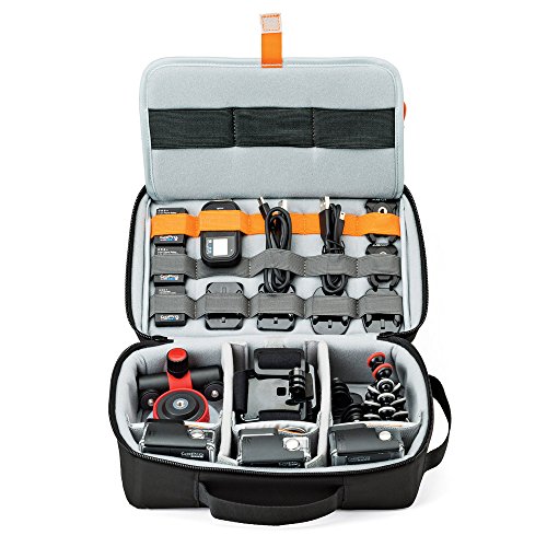Keep three complete GoPro and other action video cameras kits safe in the View Point CS 80 case. Designed to fit the depth and form for top-selling brands, these flexible protective cases are a must have for anyone shooting action video. The View Point CS 80 has a padded adjustable divider system allowing for customization for the needs of the day. Two of the dividers have a built in pocket perfect for stashing a remote or filter without concern of scratching the camera. A see through zippered mesh pocket provides a space for micro SD cards and cables, while backdoors, batteries and mounts fit easily in the wall of accessory straps. The super portable design makes it easy to carry in a large bag or to carry by the grab handle. Easy-grab zippers offer smooth operation, even with gloved hands. From the skateboard park to the side of a mountain keep your GoPro or other action video camera safe and secure in the View Point CS 80 case. Get one today and make every day epic.Feature