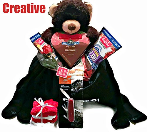 Product Description Give your sweetheart a gift he can enjoy on Valentines Day and there after. BRANDED duffle bag great for gym or travel. Filled with BRANDED gifts and snacks. Varies ways to setup this gift bundle: Creative, Simple, or Surprise(shown in pictures). Ships neatly packed as a surprise. Select your color Teddy gift bundle (Brown, Grey, or Tan) 0