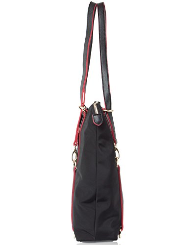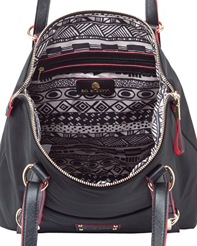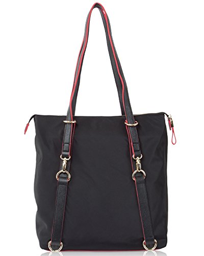 The Luke Tote from Big Buddha is a fashionable Nylon tote with contrast-painted edges that underscore the breezy sophistication of a sleek nylon Tot that easily converts to a hands-free backpack. Top Zip closure secures items inside, the fully lined interior featuring a zipper pocket and two slip pockets for for on-the-go convenience.Feature