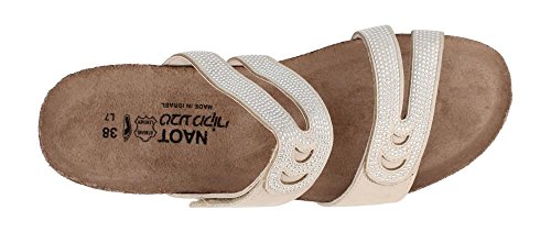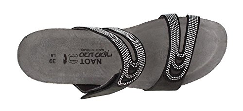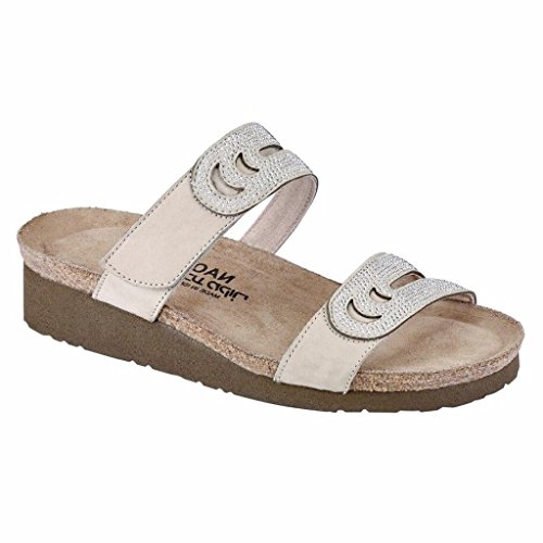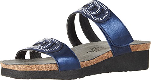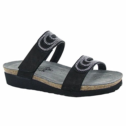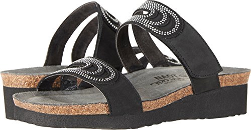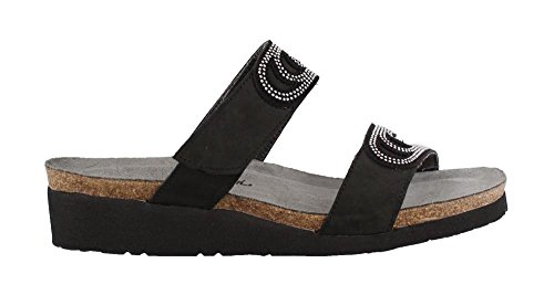 Product Description Women's Naot, Ainsley Slide Sandals Finish off your weekend look with these sandals Leather upper with decorative rivet accents Slide on style with two adjustable hook and loop closure straps for a snug fit Suede wrapped cork and latex footbed molds to your foot for added comfort Arch support with every step 1 1/4 inch wedge heel Manmade outsole. Heel Height of 1.25 inches 0