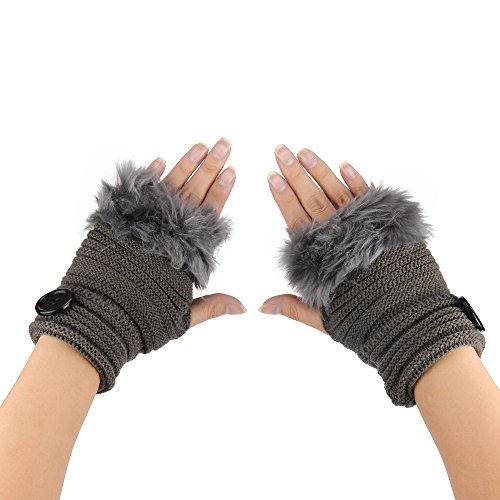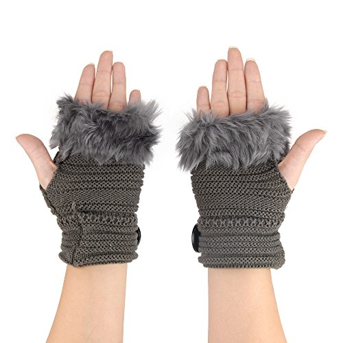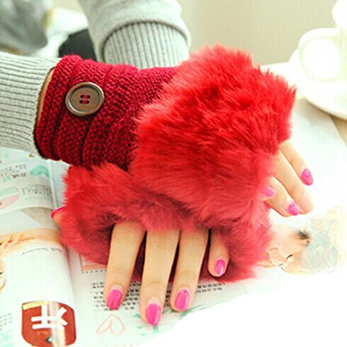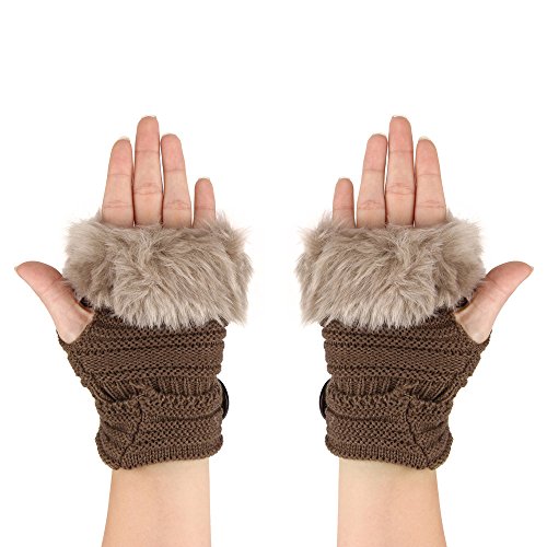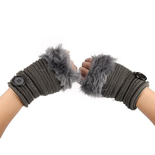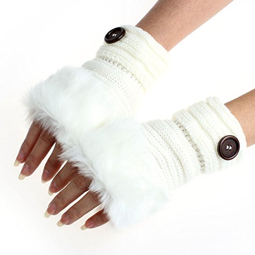 | (Xander Womens Gloves,)/Accessories/Cold Weather Accessories/DIRECT FROM USA/Womens Wrist Length Fingerless Warm Wool Knit Rabit Fur Gloves Cable Mittens Winter For Typing |