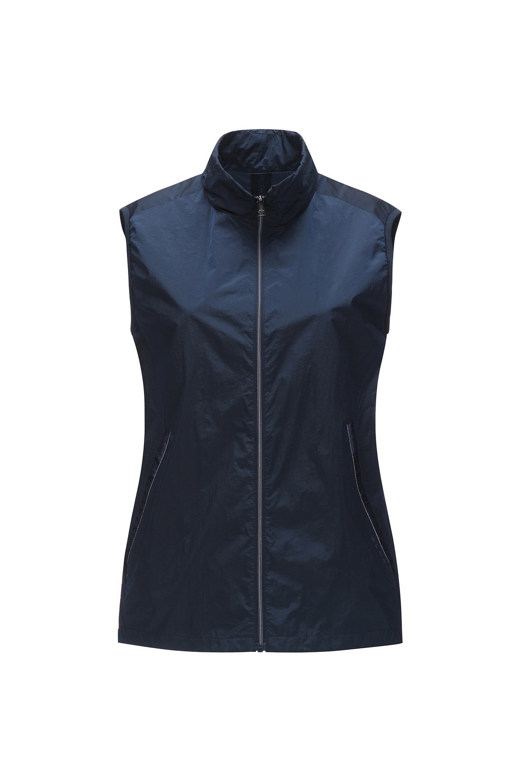 - 솔리드 디자인의 모던한 멋을 연출하는 GX 라인 여성 베스트. - 가벼운 터치감의 소재를 적용하여 착장감이 우수함. - 하이넥 디자인에 풀지퍼 여밈으로 착장이 간편함. - 암홀 부분의 접밴드 디테일로 실루엣을 잡아줌. - 사이드 지퍼 포켓을 적용하여 수납성을 더했음. - 포켓 부분의 톤온톤 배색 테잎,메탈사 디테일로 포인트를 연출함. - 부분 로고 나염을 적용하여 완성도를 높였음. - 등판 지퍼 이면에 우수한 신축성의 이소재로 활동성을 더했으며, 변형 연출이 가능함. - 라운딩 및 야외 활동에 코디 연출이 용이함.