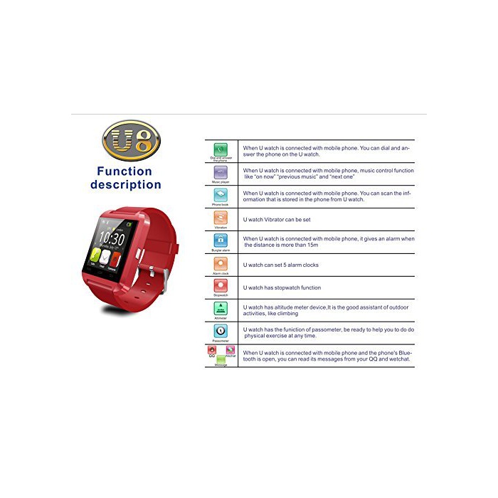 YUNTAB(JP) Bluetooth smart watch U8 스마트 워치 1.44인치 초박형 후루타지 워치 착신 통지/분실 방지/보수계-페도미터/소비 칼로리/알람/시계
