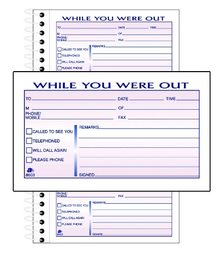 Adams Phone Message Book, 8.5 x 5.25 Inch, Spiral Bound, 2-Part, Carbonless, 3 Messages per Page, 300 Sets, White and Canary (SC8603D)