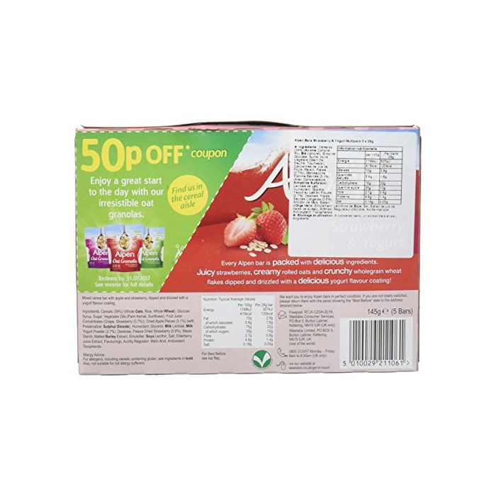 원본상품명: ウィタビックス アルペンシリアルバ ストロベリヨグルト 29g×5本