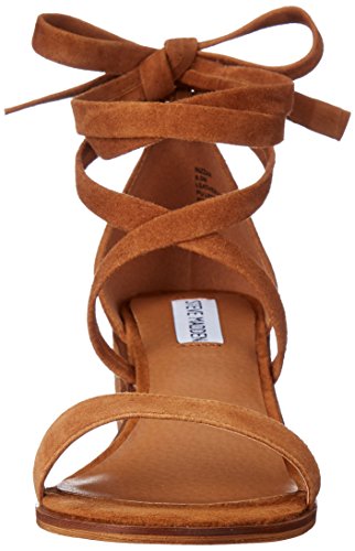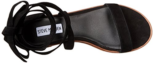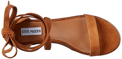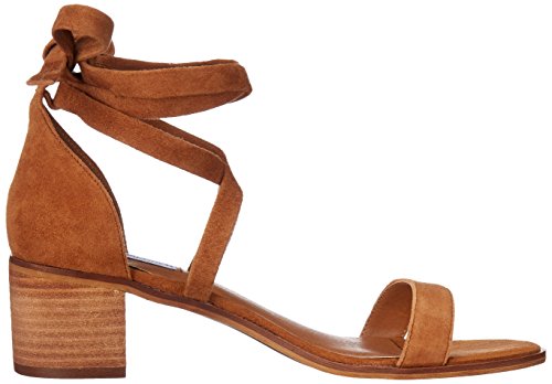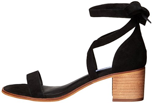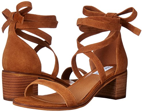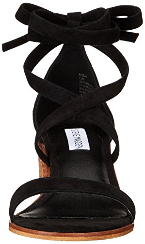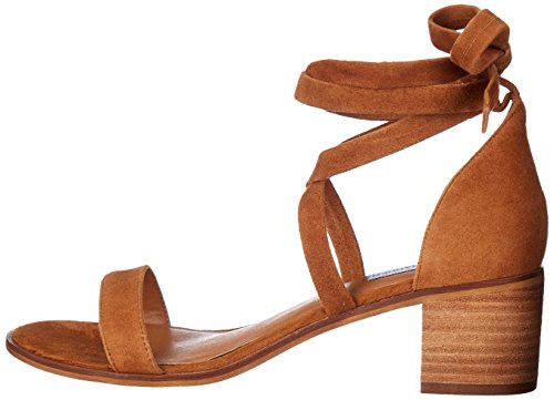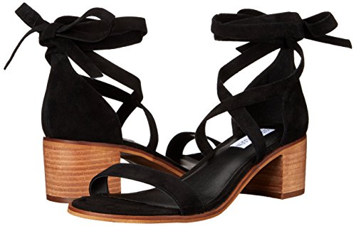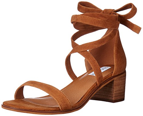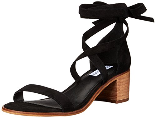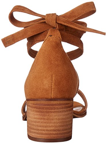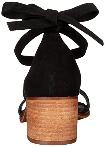 Strappy suede sandal with mid-height block heel and wraparound tie at ankle