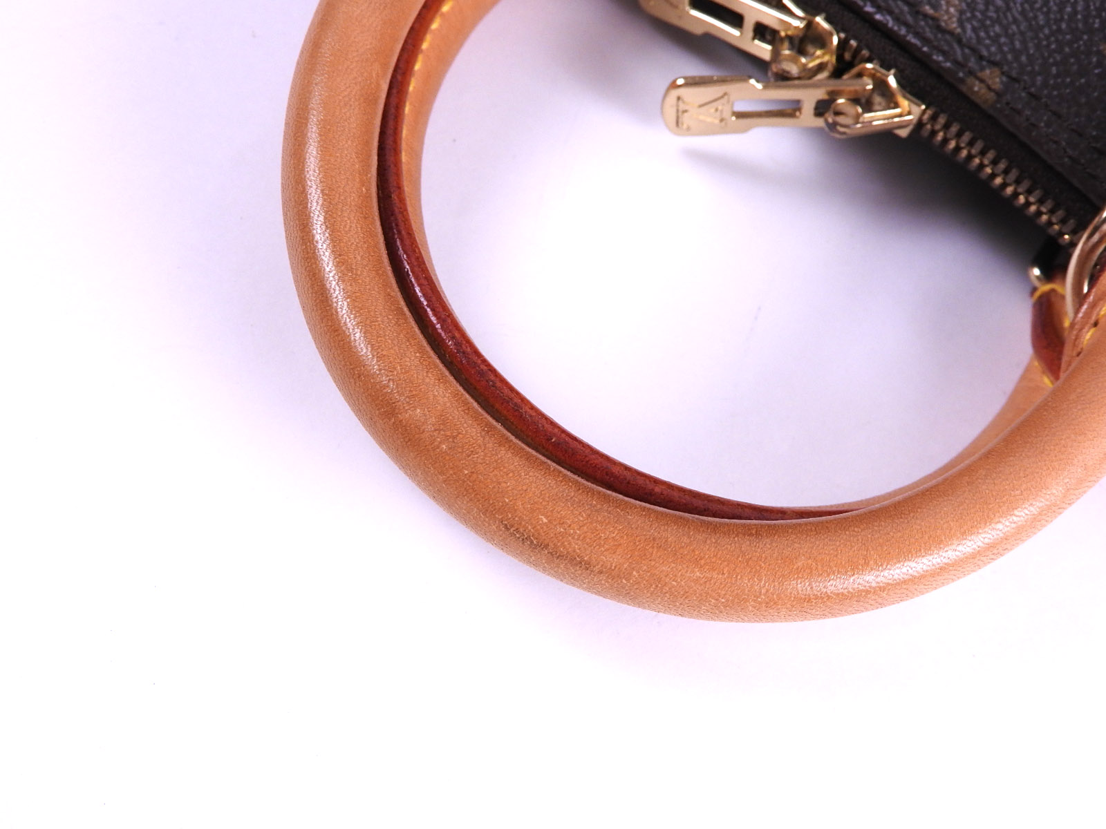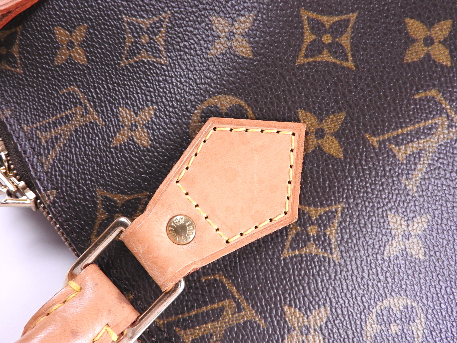 Monogram canvas: Barely used feeling. Good condition. Leather: Slightly used feeling. Some scratches, stains and tanning. |