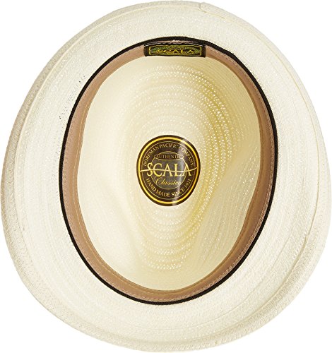SCALA Men's 5 BU Toyo Fedora with Striped Ribbon Band Ivory LG (7 1/4-7 3/4)