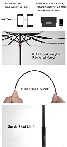 -. Feature : 遮光率: 100% UV遮蔽率: 99.9% UPF評価: UPF50+ 素材:生地:高密度撥水PG材料、親骨:グラスファイバーとスチール、受骨:スチール、中棒:スチール ハンドル:天然ゴム、特殊加工:ブラックコロイドでUVプロテクションコーティング加工 / 雨の日も晴れの日も使えるから、鞄に常備する事で急な雨の時にも安心です。 / 耐久性あるアルミニウム構成と、8本の折れにくいスチール製の傘骨で、強風でも曲がったり壊れたり裏返ることのない機能性です。 / 収納時(約)27センチでバッグに入れて持ち運びが便利、広げると直径105センチもあるので、土砂降りの雨の中、二人で入っても濡れない大きなサイズです。 / 【持ちやすい】グリップはすべり止め機能付きゴム製なので、長時間差していても手と手首が疲れにくい仕様です。