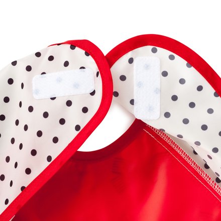 1. 裾を折り返せばポケットが完成 赤ちゃんとお洋服を汚れからしっかり守ってくれる 長袖タイプ。裾をくるっと折り返せばポケットになり、 食事中の食べこぼしをキャッチします。