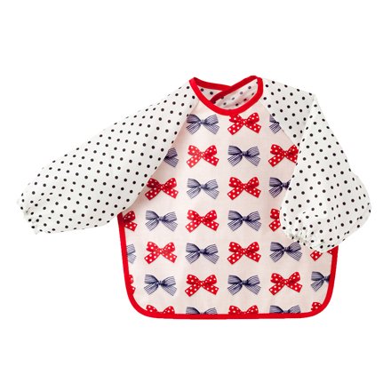 5. 縫製・検品すべて安心・信頼の日本製 赤ちゃんにやさしい安全で高品質なアイテムです 生地のつや消しラミネート加工ももちろん安心の 日本製。上半身をすっぽり包んでくれる長袖タイプで、 お遊びタイムなどシーンを問わず着まわせます。