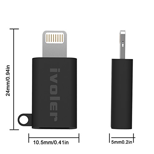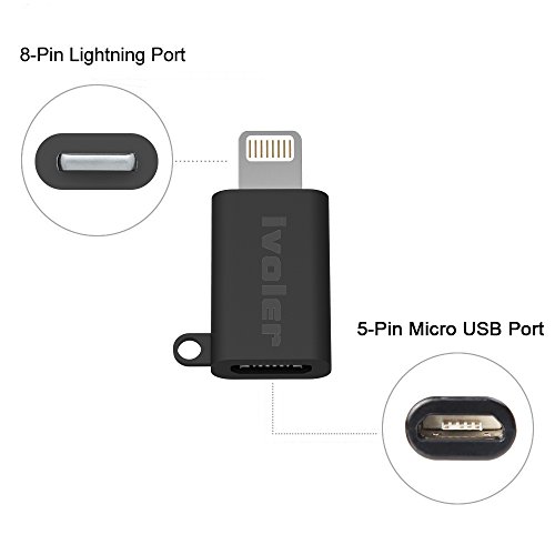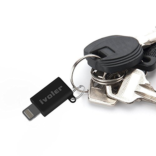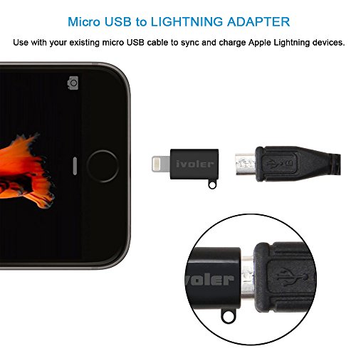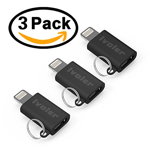 (3 Pack) iVoler Micro USB to 8 Pin Lightning Adapter with keychain lanyard straps holder for iPhone 7 6 6S Plus iPad iPod, Compatible with Apple iOS All Devices - Black