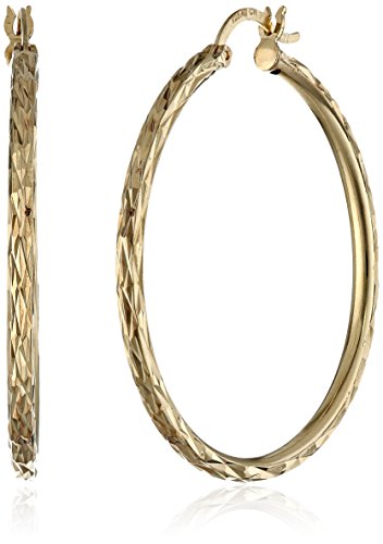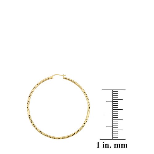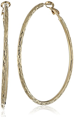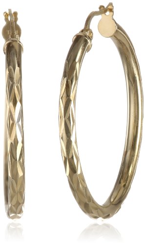 -. Title : Goldtone Finish Silver Diamond-Cut Clicktop Hoop Earrings