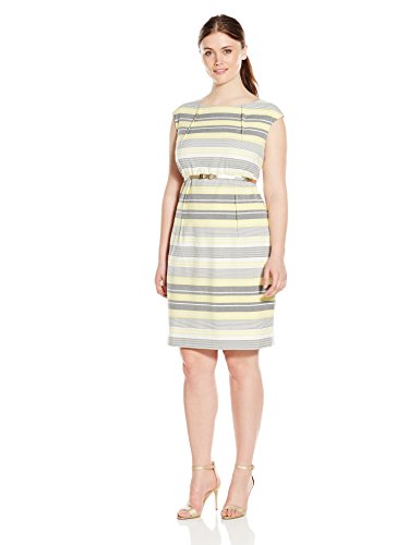 Calvin Klein Women's Plus-Size Belted Striped Sheath Dress
