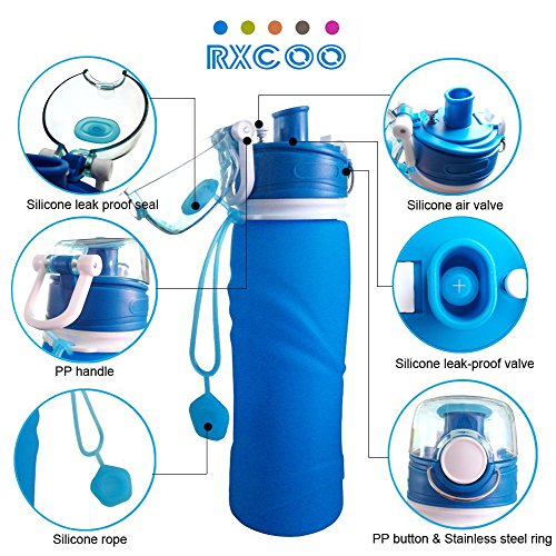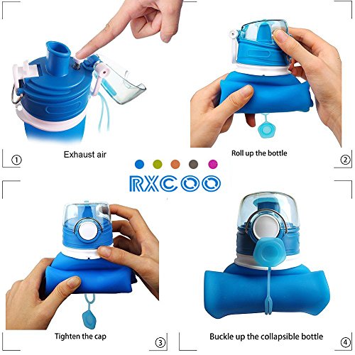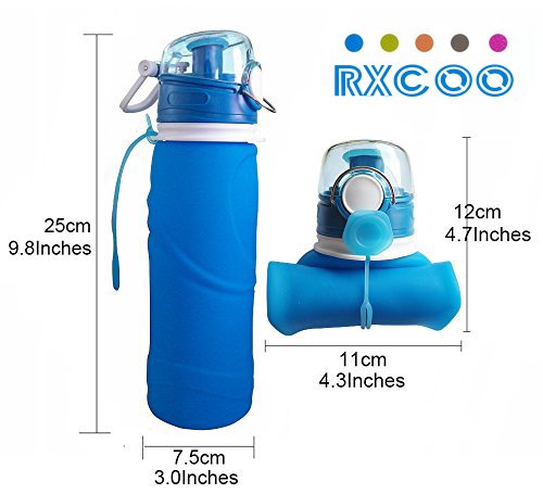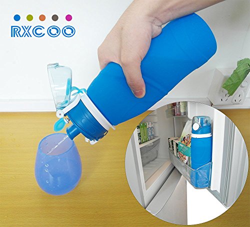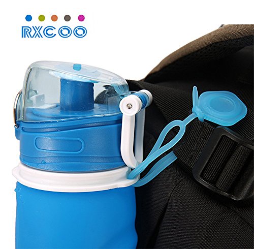 Collapsible--collapsible water bottle silicone allowed to be folded to 1/3 of the size for easy transport. Retainer band for clip-on and storage, stand stable even with less water.