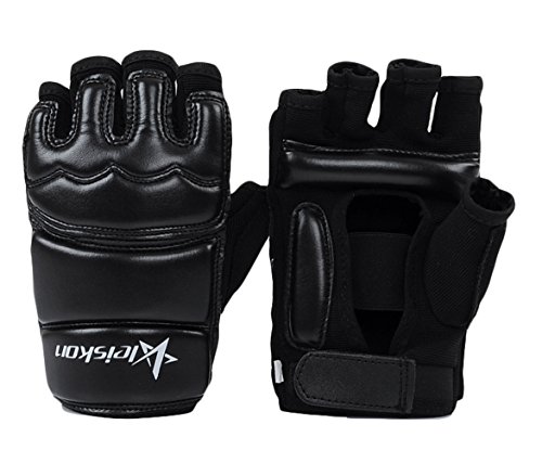 -. Feature : Material: PU leather + High density EVA. / Color: Black. / Half-finger boxing gloves. / Palm Circumference: XS: 17cm(6.7in). S: 18cm(7.1in). M: 19cm(7.5in). L: 20cm(7.9in). XL: 21cm(8.3in). / Breathable and comfortable.