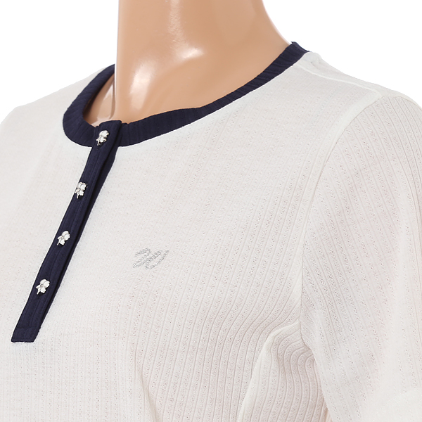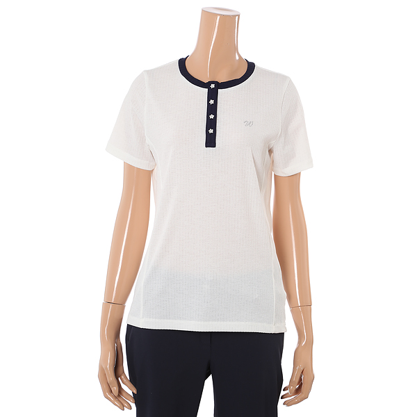 [울 시] 꽃모양 단추포인트 반팔티셔츠 [여성]