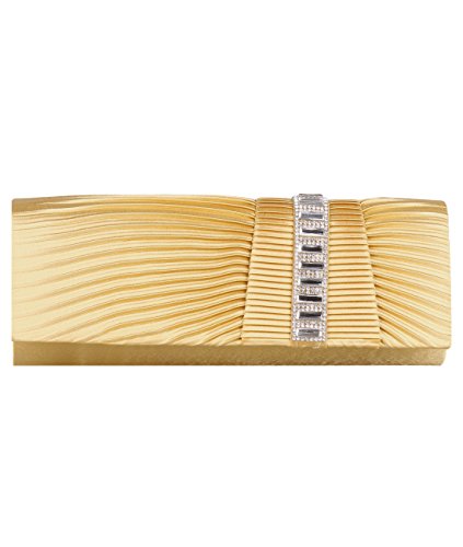 KRISP® Ruched Satin Evening Clutch Offset your evening ensemble with the perfect accessory, whether you're off to a club or any formal event. Main Features: ? Brand new with label ? Rectangular frame, satin body, Rhinestone embellished front ? Ruched flap, Small inner pocket ? Magnetic snap closure ? Optional shoulder chain included ? Dimensions: (W) 10"/25.5cm x (H) 4"/10cm x (D) 1.5"/4cm ? Pattern: Solid ? Closure type: Snap On ? Material: Textiles ? Your size / color not available? Please come back to us after ca. 1-2 week time to check the availability. KRISP is a British fashion clothing retailer based principally in London and the South of England. It manufactures and retails fashion items aimed both at young and mature customers, with a focus on fast fashion and "going out" clothing; the company's range includes items such as tops and blouses, dresses and skirts, trousers and jeans, jackets and outerwear, shoes and accessories. For more fashion accessories and clothing visit KRISP Amazon shop front. 0 |