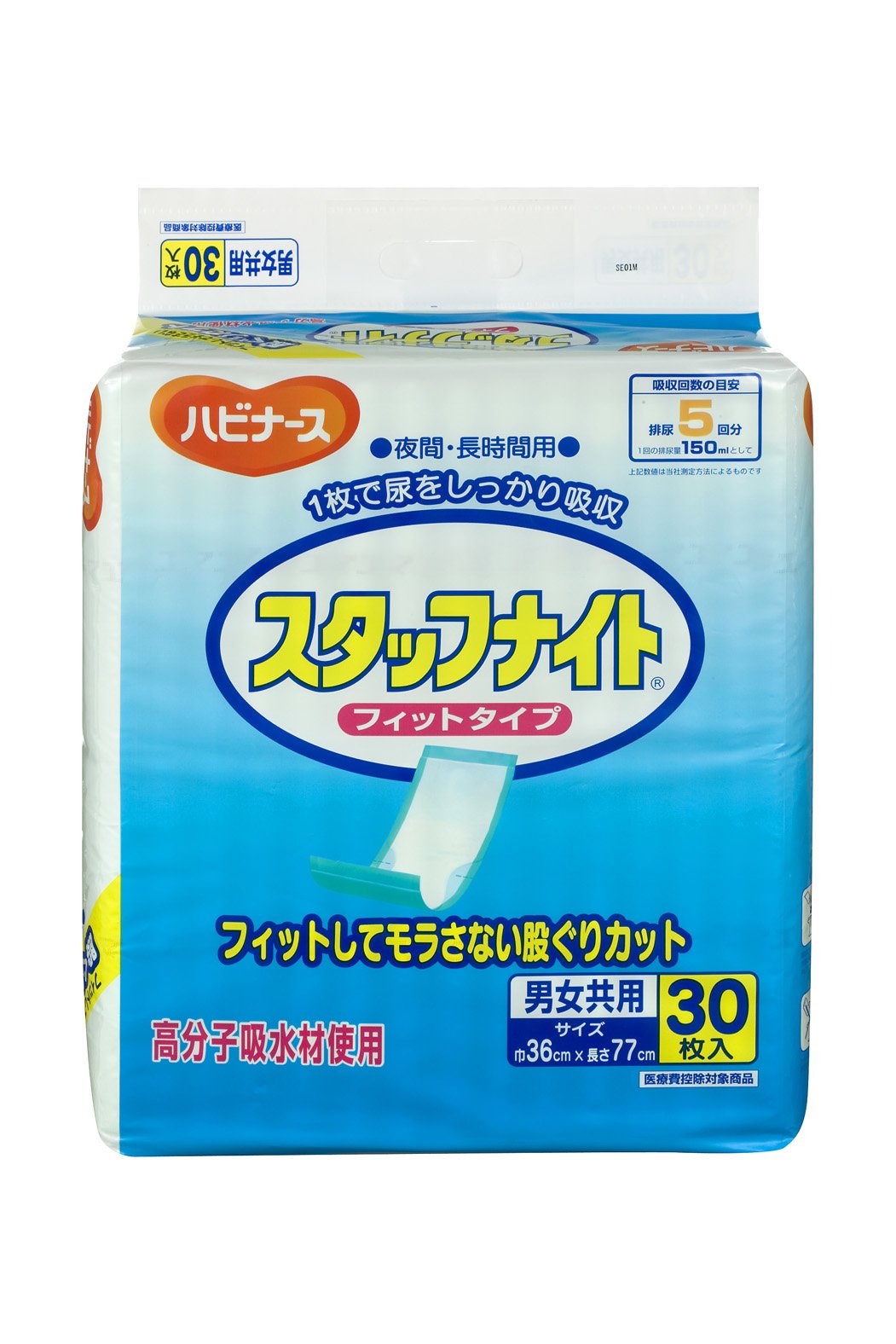 "Habiners Staff Night Fit Type 30 pieces" is a diaper for nursing care (flat type) for both sexes.