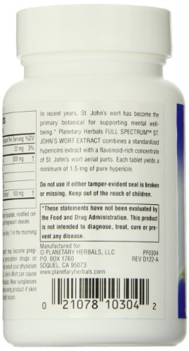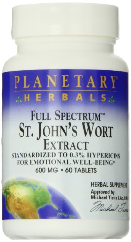 -. Binding : Health and Beauty -. Brand : Planetary Herbals -. EAN : 0021078103042 -. Feature : Supports emotional well being / Health benefits include treating coughs and sinus infections / Herbal supplement -. IsAdultProduct : 0 -. IsAutographed : 0 -. IsMemorabilia : 0 -. Label : Planetary Herbals -. LegalDisclaimer : * These statements have not been evaluated by the Food and Drug Administration. This product is not intended to diagnose, treat, cure or prevent any disease. **Always refer to the manufacturer's label on the product for description, recommended dose and precautions. -. Manufacturer : Planetary Herbals -. Model : B000JKRE3W -. MPN : B000JKRE3W -. NumberOfItems : 1 -. PackageQuantity : 1 -. PartNumber : B000JKRE3W -. ProductGroup : Health and Beauty -. ProductTypeName : HEALTH_PERSONAL_CARE -. PublicationDate : 2013-08-22 -. Publisher : Planetary Herbals -. ReleaseDate : 2015-06-22 -. Size : 60 -. Studio : Planetary Herbals -. Title : Planetary Herbals St. John's Wort Extract Full Spectrum Tablets, 60 Count -. UPC : 021078103042