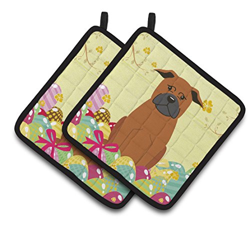 Caroline's Treasures Easter Chinese Chongqing Dog Pair of Pot Holders, 7.5HX7.5W, Multicolor