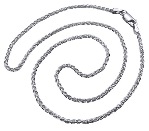 CLOSE-OUT SALE. EVERY CHAIN PRICED AT $5.99! Our sterling silver Wheat (Spiga) Chain is an example of fine craftsmanship. Our wheat chain offers a luminous shine that reflects light, and the distinctive organic line of the design provides style. The feel of our silver chains is truly luxurious. They decadently drape themselves on your skin like silvery silk. Chain is available in bracelet lengths of 7, 8 and 9 inches or necklace lengths of 16, 18, 20, 22, 24 and 30 inches. Imported from Italy, our wheat chain measures a thick 1.5 millimeters in diameter with a heavy sterling silver gram weight. The curved lobster claw clasp provides a classic and secure finish. Packaged in an organza gift bag, this .925 sterling silver chain makes an ideal gift for you or someone special!Feature