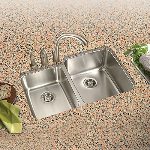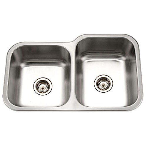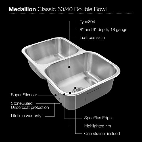 Houzer MEC-3220SL-1 Medallion Classic Series Undermount Stainless Steel 60/40 Double Bowl Kitchen Sink, Small Bowl Left