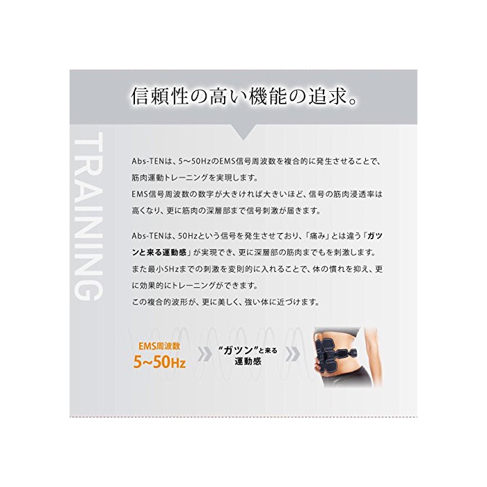 원본상품명: プロフェッショナルEMS Abs-TEN 10個のPADで筋肉を刺激 AKM-1025