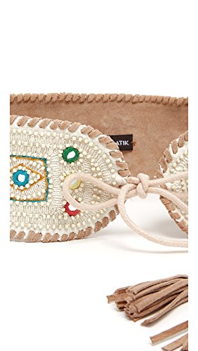 An eclectic mix of mirrored paillettes, beads, colorful thread, and shells lend a unique touch to this Antik Batik belt. Tassels tip the slim cotton ties.