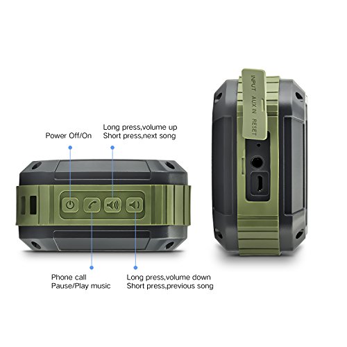 -. Feature : The super Bluetooth speaker V2.1+EDR Standard A2DP: This Bluetooth speaker is an incredibly powerful speaker with Bluetooth V2.1+EDR Technology that offers you instantaneous connection (3 seconds) and longer Bluetooth connectivity range up to 10 meters (33 feet) without barrier. Interfaces allow the music to be played either through Bluetooth or AUX / Compact wireless Bluetooth speaker offers loud pure stereo sound: Powerful 81mm diameter speakers and Enhanced Bass Resonator play a full-range, abundant stereo audio and loud sound with the ultra small size portable lanyard audio power amplifier / Built-in Rechargeable Battery for up to 4.5-7 hours of playtime. Microphone design for hands-free speaker phone calling. Designed to be comfortable to carry with hand strap, which suitable for travel & hiking, extreme light and easy to fit in your backpack / The classic simplicity but fashion tactile sensation portable wireless speaker will offer you the enjoyment of the fantasy design. Besides, the compact and sleek premium ABS black cover reflex some shine/lights in bright environment, which will not only drive you lose yourself in the brilliant crystal clear and incredible sound, but also do good to your eye's protection / Easy broad connectivity to computer, laptop, PCs, tablets, iPhone/iPad/iPod, Samsung, and other smart phones via wireless Bluetooth or 3.5mm Audio Cable
