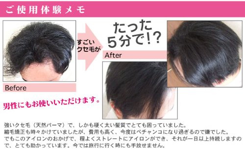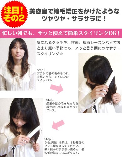 ですが、最高温度が200℃のこちらのヘアアイロンなら、セラミックプレートでくせ毛を芯からしっかりセットします。